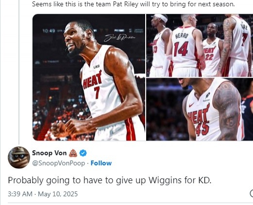 5月12日讯 近日热火球迷们在社媒发文积极构思各种与KD有关的交易方案。