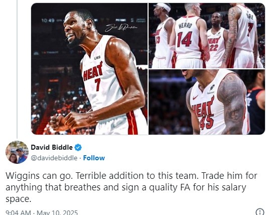 “他们可能不得不放弃维金斯来追逐杜兰特。”一位球迷写道。
